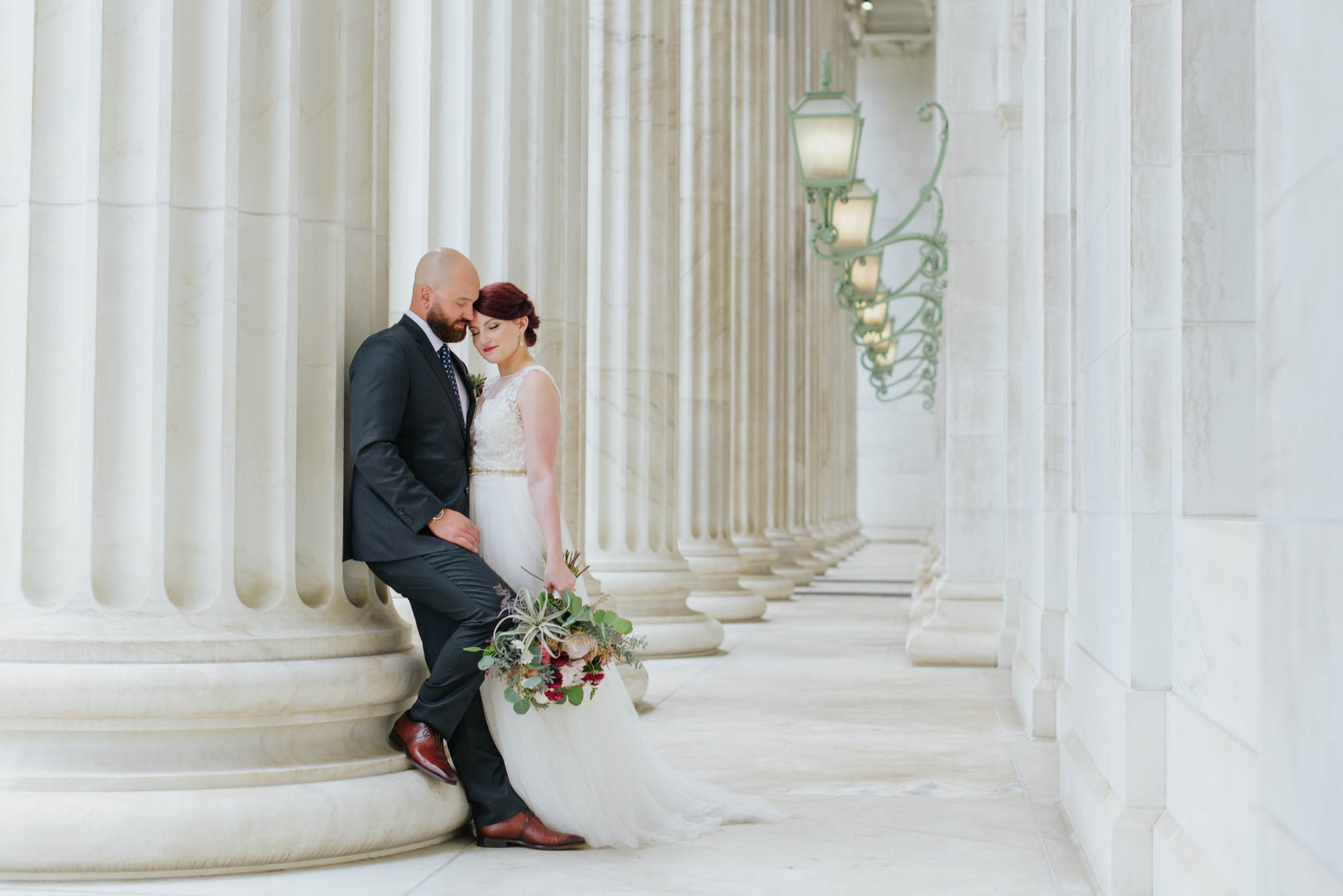 Here’s a wedding for the history books, folks! Aly and Hans shined on their beautiful wedding at Holy Ghost and reception at The Wellshire Inn Event Center. Aly’s beaming smile radiated even more when she first saw Hans downtown in front of Union Station outside the Crawford Hotel. I loved that they did a first look so that we had plenty of time to roam the streets of Denver with their wedding party. We gathered together at the Federal courthouse. I loved how the classic columns balanced with Aly’s style in dress and hair along with her bridesmaids.