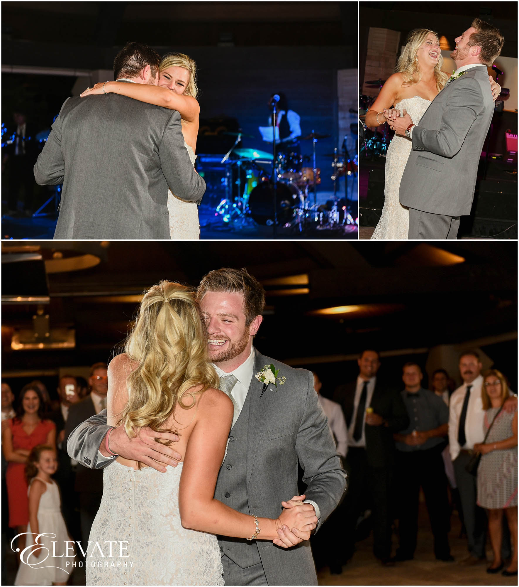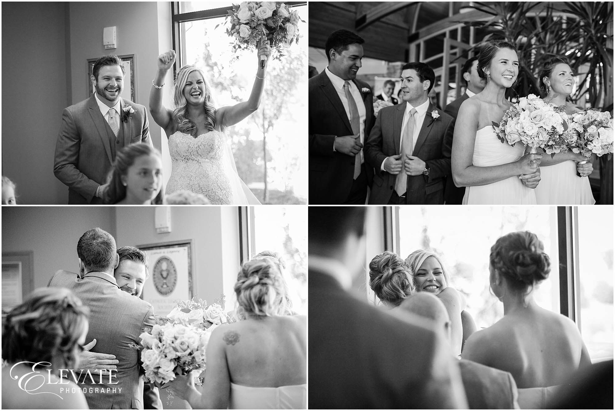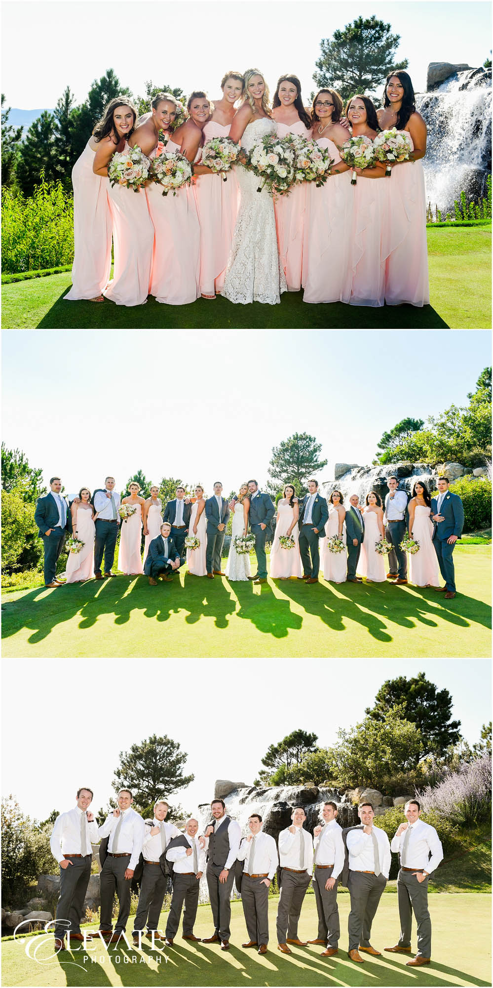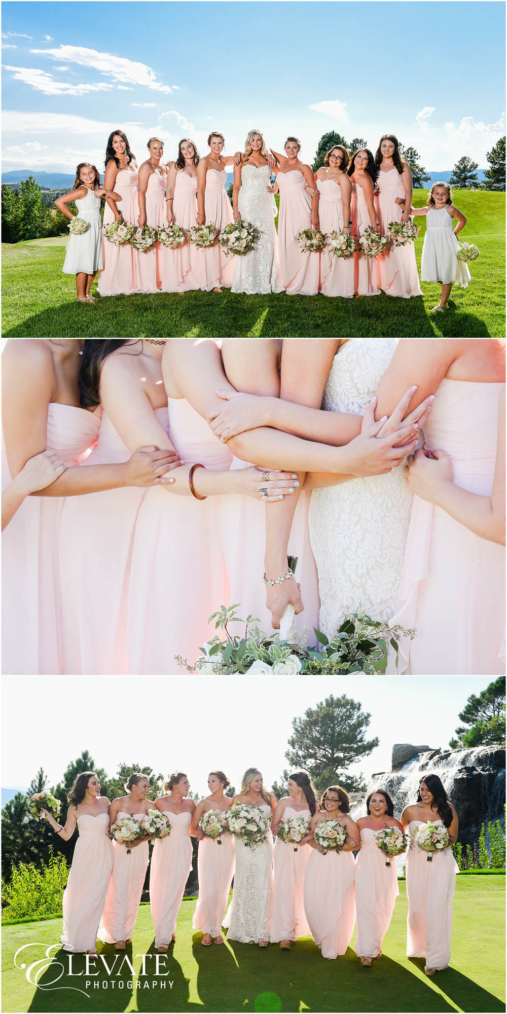 At at the end of it when they were married we all celebrated! Oh boy did we celebrate. Like I said their wedding party was awesome. They messed around and joked and had a good time during photos. Something I love so much! I think a wedding day should always be so fun. We slid from photos to cocktail hour to a delicious rib dinner. They even had custom rib bibs for all the guests with Zach + Alyssa on them. From there, the toasts had everyone crying, yes even me, Sheena and Ardi, and the dance party and band was out of this world. The Sanctuary puts on a good party in their open pavilion where you can boogie down with the fresh air and beautiful views of Daniels Park around you.