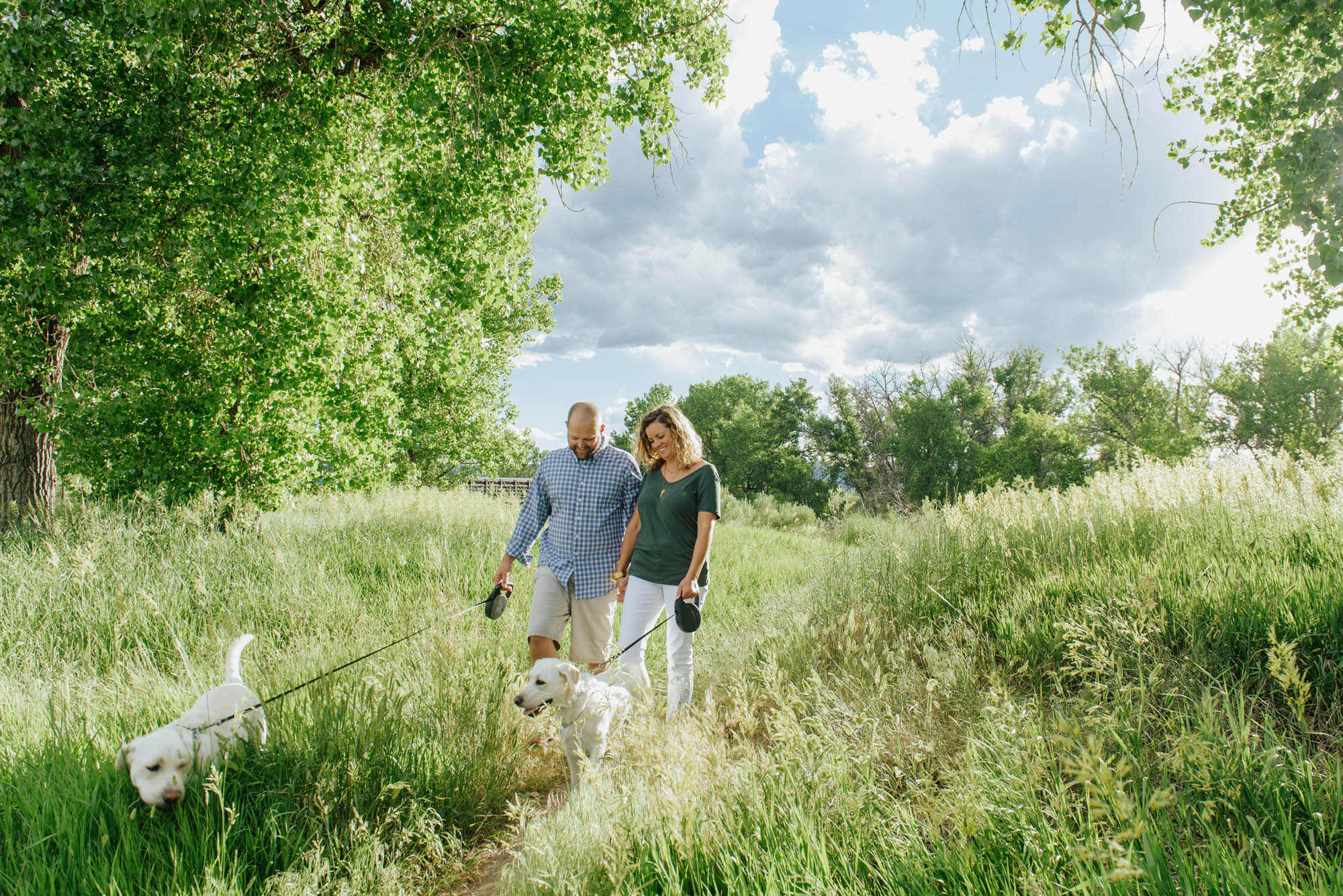 I love when couples introduce me to a new location! Jennifer spent a lot of time planning ahead and picked this beautiful location for their engagement session. As Jennifer and Wil roamed Platte Park I followed closely behind them and their adorable pups. This was the perfect spot for an afternoon together. The weather was perfect for photos, slightly overcast with the occasional pop of sun. It’s always special to see how much fun a couple has together in their natural element. Jennifer & Wil busted out cute synchronized jumps and toe kicks together any chance they got. I can’t wait to see them on their wedding day, surrounded by their closest friends and family! -Allie
