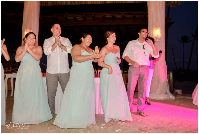 I arrived in Punta Cana the day before and after getting settled at the beautiful all-inclusive resort(hello piña colada), I joined them at their rehearsal party. Their whole wedding party was at the resort bar giving it their best shot at karaoke. I even joined in on Cory’s rendition of Foo Fighters “Everlong.” I knew here that the wedding was sure to be awesome!