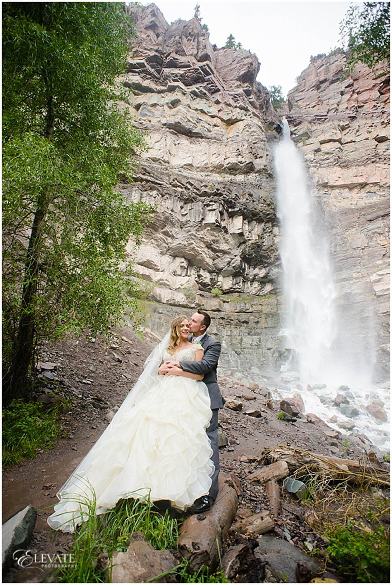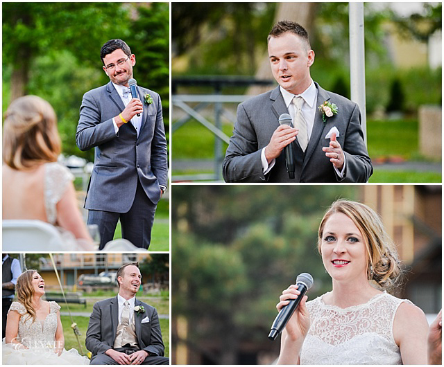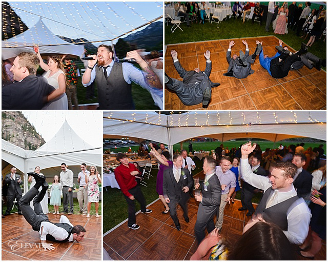 We then toured back to Ouray and hiked Cascade Falls. I was ticketed to see how gung ho Lindsey was in her flats and dress while hiking a pretty steep climb to the waterfall. These two live in Arizona now but definitely get a Colorado badge of toughness! We then headed down to their party at Fellin Park. They pitched a cute mini circus top tent for guests to celebrate at the feet of the grand surrounding mountains.