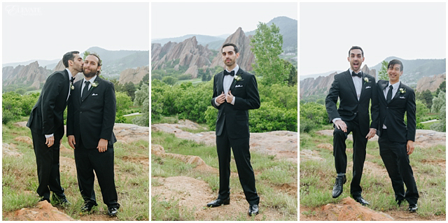 Of course, one of the greatest parts of Colorado is the weather. As the saying goes “If you don’t like the weather wait five minutes.” That’s exactly what we did, and we got so lucky. The bridesmaids were able to hike out to a beautiful overlook and get back inside before the next spurt of rain hit. As that rain approached Dave and his groomsmen were ready to rough it, and looked just wonderful pulling off the perfect groomsmen look!