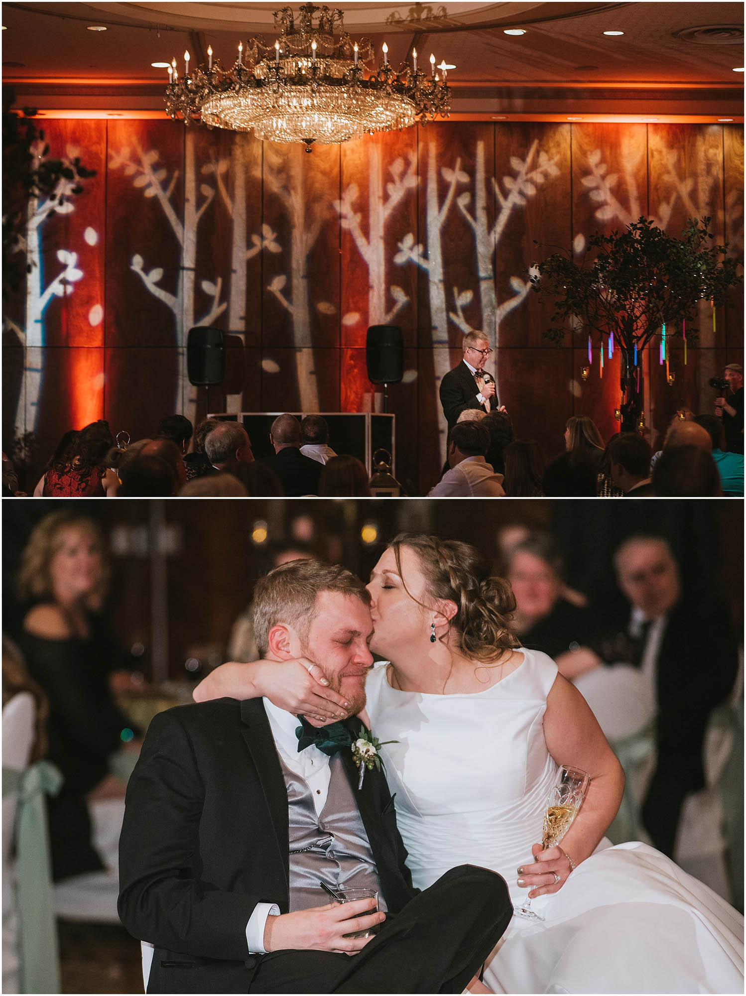 The reception had its unique and personalized touches too. Every moment was charged with excitement. As the bridal party entered all the light dimmed and everyone in the room was waving glowsticks in the air. I have seen a lot of grand entrances and they are all loud and fun, but this one was turned up to the next level. Elite DJ and The Brown Palace staff did a wonderful job of setting the scene.
