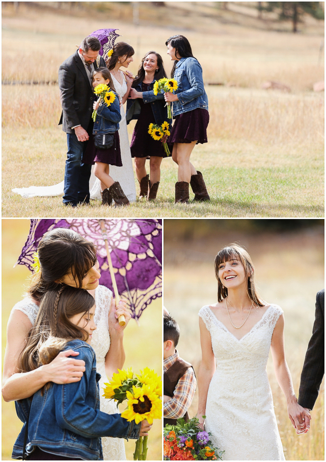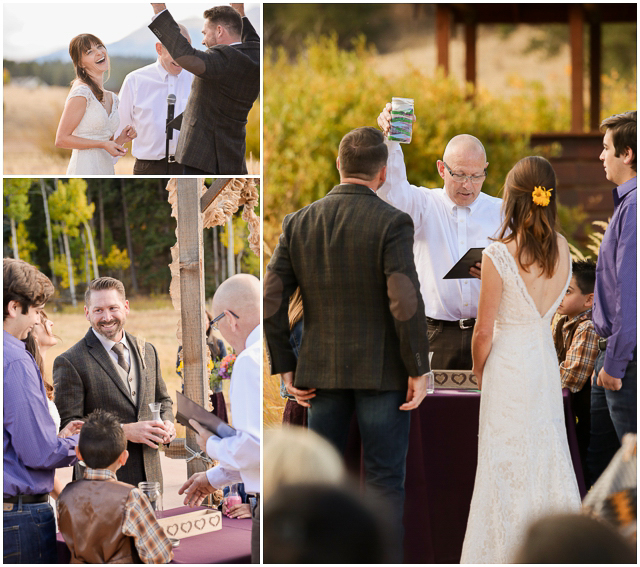 Their closest friends and family were along for the ride to at Deer Creek Valley Ranch. Family is important to them as Bo’s three kids all played a part in the day. During the ceremony, they all performed a special sand ceremony which wove them all together. When I learned that Sarah would be entering the ceremony with her girls in a classic stagecoach, I radiated with excitement with the possibilities. When Sheena and I saw the coach and horses in person, I exploded! Even the handler who guided the stagecoach looked like a character out of an old west flick.