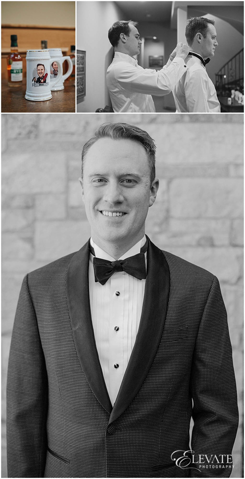 Stuart and Brian are married! They celebrated with their closest friends and family at the beautiful Columbine Country Club. This beautiful venue is brand new, and absolutely stunning. Stuart and Brian were the first couple to tie the knot here so it was an extra special day. The girls kicked off the day in the beautiful bridal suite. Hair and makeup were almost complete by the time my team and I arrived. Champagne was poured and the girls were rocking floral and smiles from ear to ear. Everyone braved the chilly wind for photos, and they were all so good about it. Stuart and Brian did not want to see each other before the ceremony so the girls snuck back inside before the guys arrived. The guys showed up ready to go with fun matching mugs and crazy socks.