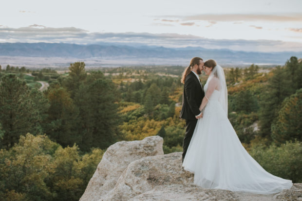 The Sanctuary is always a beautiful venue and their fall themed decor completed the dark wood and stone elements perfectly. Adrienne with A Touch of Bliss totally nailed the florals and details – so pretty! The ceremony was gorgeous, and I loved that they poured WHISKEY into a barrel for their unity “moment”. See – so cool. It also goes without saying really how beautiful Kathleen looked and how perfect they looked together standing out on the cliffs overlooking the front range. So stinking romantic!! I just love you two and am so glad that I got to be a part of your wedding. I wish you all the best!