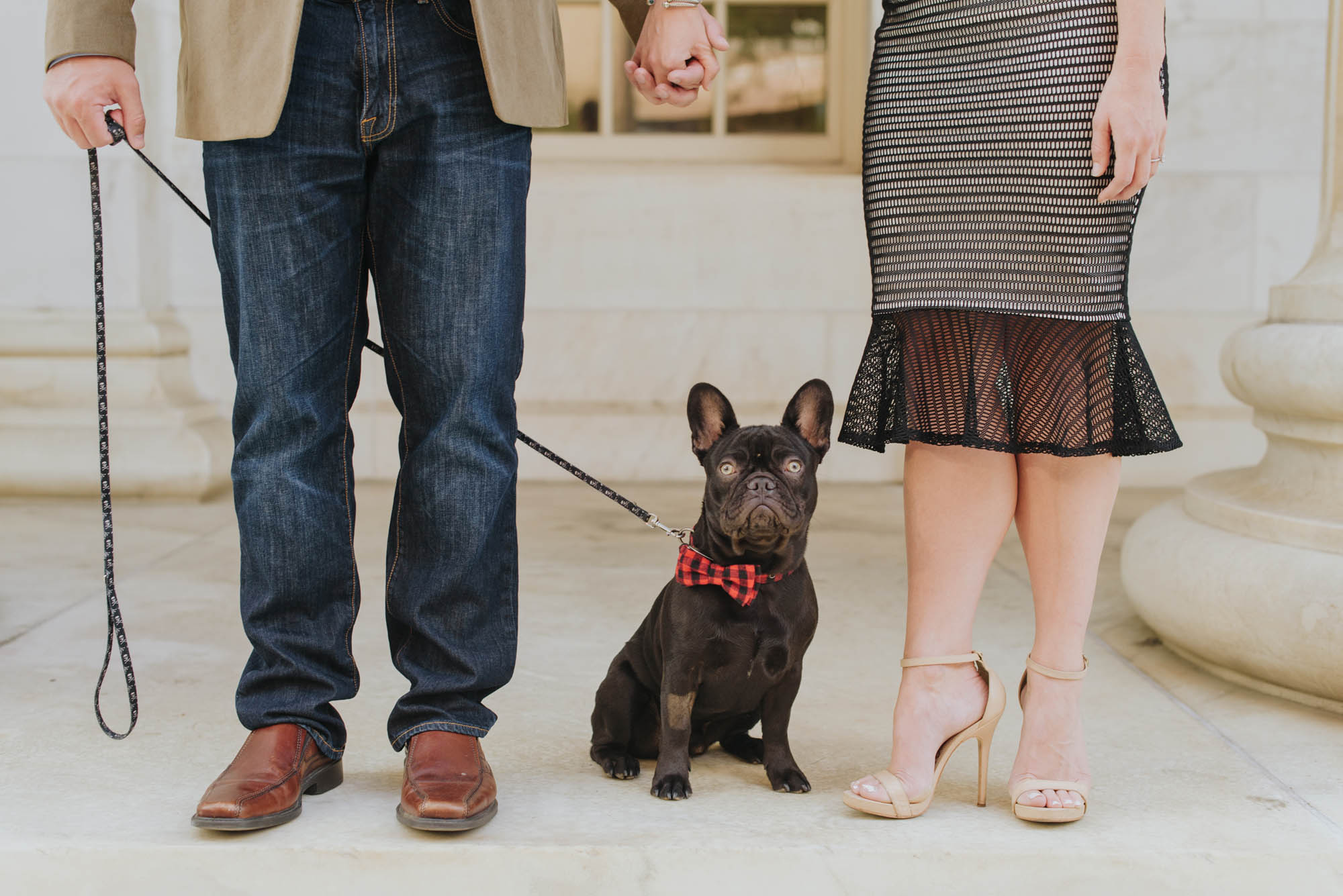 Doggies, diamonds and a date night. What better themes for an engagement session!? Beth’s work brings her to courthouse and I thought of no better place than the grand Byron White Courthouse to start out the session. They brought their Boston Terrier who couldn’t have been more on point for photos in his plaid bow tie! We had fun roaming Larimer afterwards and getting the perfect night time shot under Larimer lights with the American Flag!