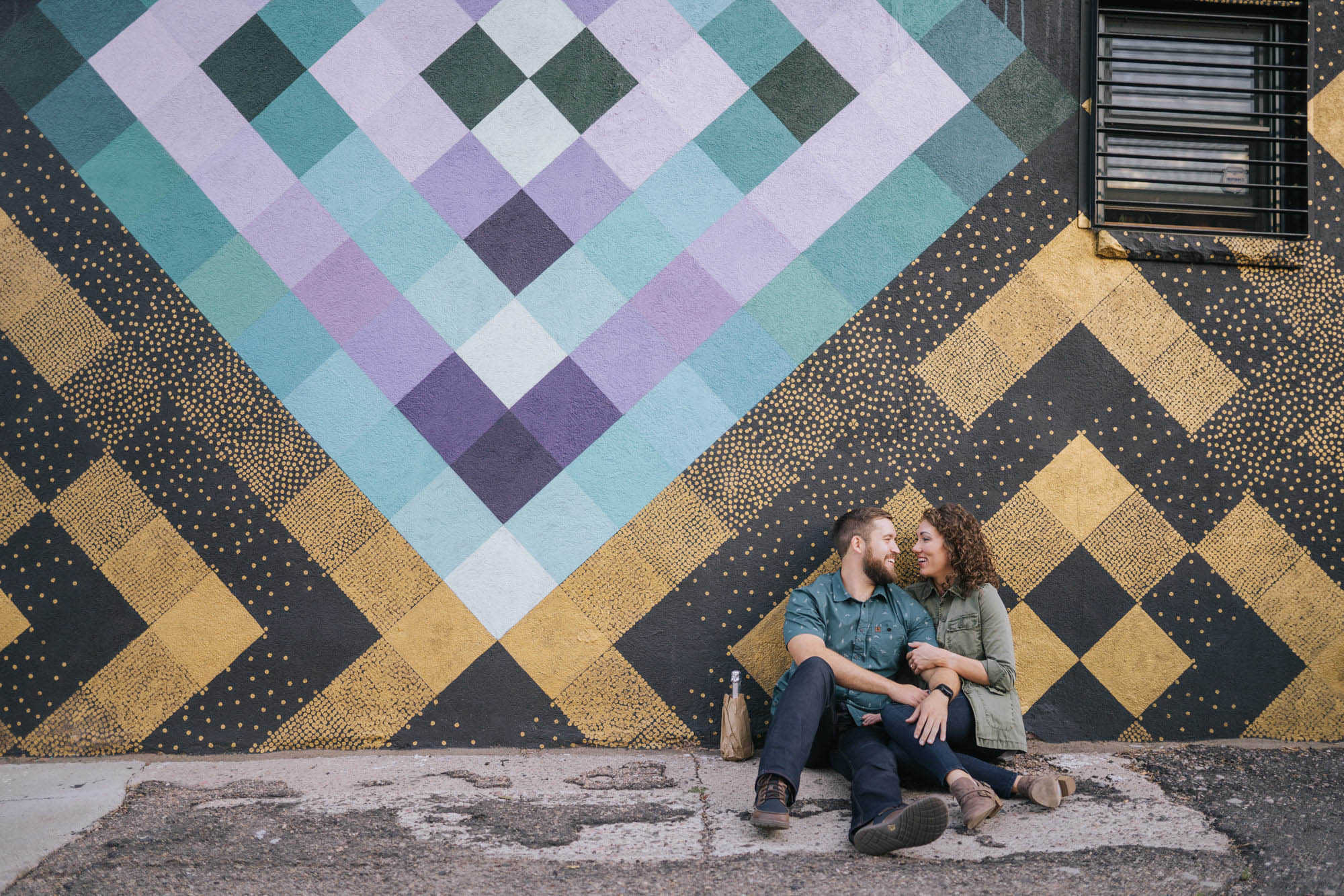 Then they upgraded from beer to champagne when we went over to RiNo to explore some of the beautiful wall art. Not many people can pull of sitting in an alleyway with a brown bag of booze. Blair and Nate are just classy enough to do it though! It was so fun watching them open the champagne and spray it all over (luckily not on me)! The beer and champagne must have given them the courage to dance for the camera. When they found their favorite mural inspired by Stranger Things, they showed me some impressive moves! I can’t wait for their wedding this October at Larkspur Events in Vail! –Ryan