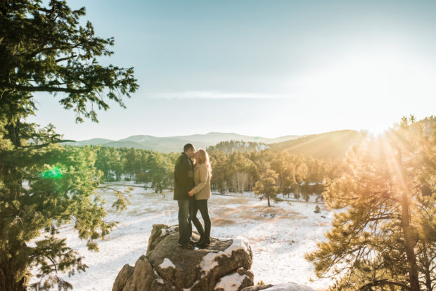 It was such a perfect day with Heather, Corey, and their whole pack of awesome pups: Stella, Ellie Mae, Hailee, and Duke. It was still very wintery, but the sun made it feel like spring. I was super excited how much sun was peeking through the trees in the forest – hooray for sun-flare! I am in love with Heather’s red hair, so pretty against the green trees. I also love how comfortable these two are together and the way they know just how to make each other laugh. I’m super impressed that Corey is training for a Triathlon, no wonder they weren’t afraid of climbing to the top of the rocks – first time anyone has been willing to go up there!