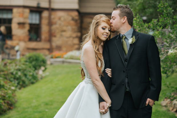 Donelle and Cory planned their dream wedding at a beautiful location, Perry Park Country Club. I was so excited to get to this venue that I had never been to before. The views were absolutely breathtaking and everything was so easy to get to! Donelle got ready upstairs in the cozy bridal suite. Her girls were dressed in lace trimmed robes, and they enjoyed mimosas and guacamole as they got ready. When it came time for Cory to see his bride, we also snuck his sweet daughter Elise into the mix. Elise was so happy for them, she couldn’t hold back the happy tears! The wedding party was a blast to photograph. They were so excited, happy and cold enough to listen to every instruction I had for them! We even had enough time to sneak off around the course with Donelle and Cory before their ceremony. Unfortunately we weren’t lucky enough to completely avoid the rain. However, Donelle and Cory invited all the right people to their wedding that loved them enough to stick it out! Something about all the smiling faces peeking out from under umbrellas made my heart so happy. Even with all the rain Donelle and Cory were up for anything. After their ceremony we whisked away in a beautiful blue car that Donelle’s Grandparents, and Parents drove away from their own weddings in. We spent a few minutes snuggled up under umbrellas, and rain jackets and it was definitely my favorite part of the day!