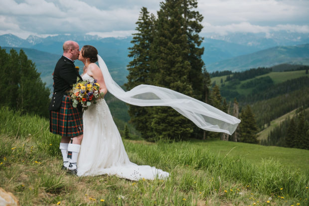 The whole day was pretty great if you ask me! The clouds had rolled in and it was calling for rain. Which is good luck on a wedding day but let’s be honest, every brides nightmare. However, it could not have turned out better. The clouds were soft and light and gave us the coolness from the hot Colorado sun, that you need when you are on the very top of a mountain. The light was perfect and the light rain that did come in the morning made the mountains glow with greens and yellows. It looked like a lush Scottish day. Which was perfect for Chris and his groomsmen’s ensembles.