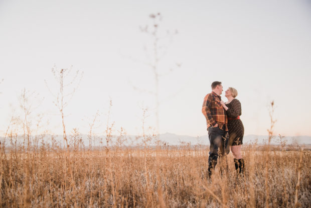Heather and Nick have known each other since high school. They took it to the next level after meeting more recently at this very football field Broomfield! They supported their favorite Broncos jerseys and danced on the football field! They brought their pup with them too for the adventure. We then wandered to a nearby field that was beautiful with fallen trees and Fall grasses. It was a lovely sunset and was great to see how sweet and playful they are with each other.