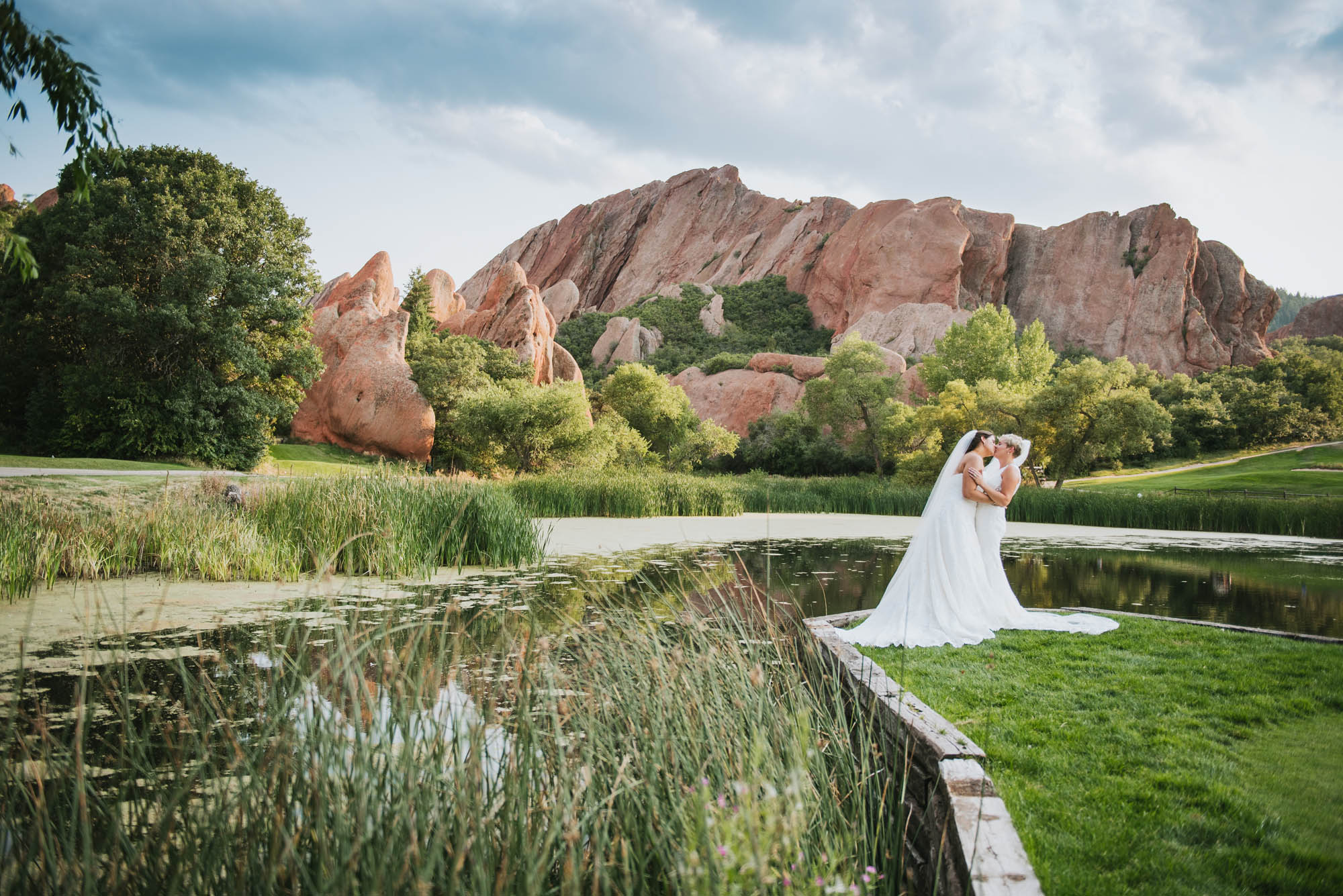 We did their first look up on top of the rocks overlooking all of Arrowhead Golf Course and Roxborough State Park. Irene kept saying all day “I just want to know what Haley is thinking.” She was so concerned that Haley was having a good day, that she was ready for this and excited. It was one of the many markers that show that Irene always puts Haley first. We spent the time before the ceremony laughing with their wedding party and climbing around on the rocks. Then as we headed down to get ready for their ceremony Irene and Haley got to have a private moment to just hang out.