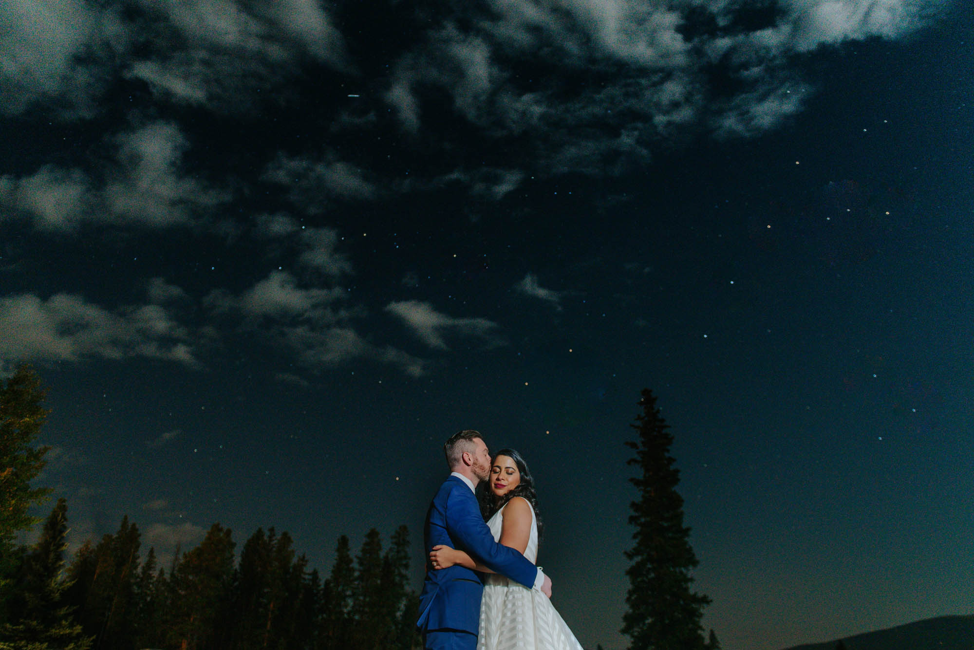 I mentioned on Facebook that Ivy and Eamonn’s wedding was out of this world. Although that is a little bit cheesy to say, it has a lot of elements of truth to it. I will start with the easy stuff. Ivy and Eamonn love the sky and space. With this, they knew they wanted the wedding to have a space theme without being over the top. With the help of Curate Events & Design they did it so beautifully. There were little touches to stary skys and moons. Geodes and night sky scenes. Ivy’s shoes were galaxy inspired and Eamonn and the groomsmen had astronaut socks on. The tables were elegant with the purples, navy and silvers. They also had a photo booth where they made a custom crescent moon to sit in. They picked the perfect venue for this as well. With the mountain views and open skies at Ten Mile Station, there is nothing like the stars you see.