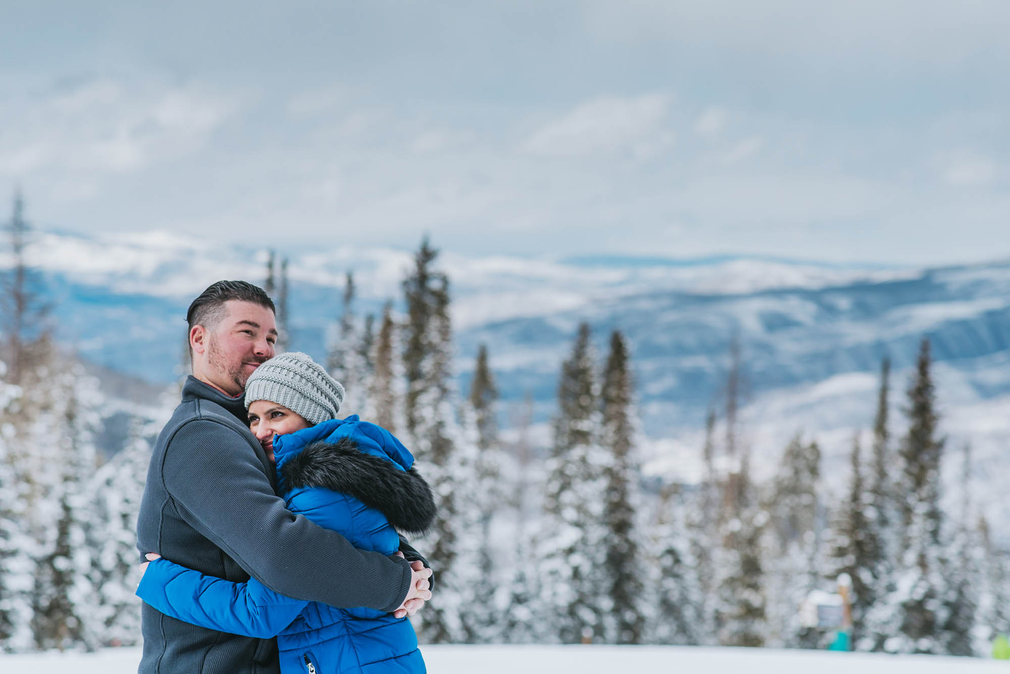 It was cold up top of the mountain, but that didn’t matter to them. They were enjoying the time together since driving all the way out from Colorado. They kept each other warm and laughing. We explored the trees in between runs and the wide open space of the mountain. The gondola ride back down was so fun just to sit and chat and get warm for a second. It made me so excited to photograph their wedding the next day!