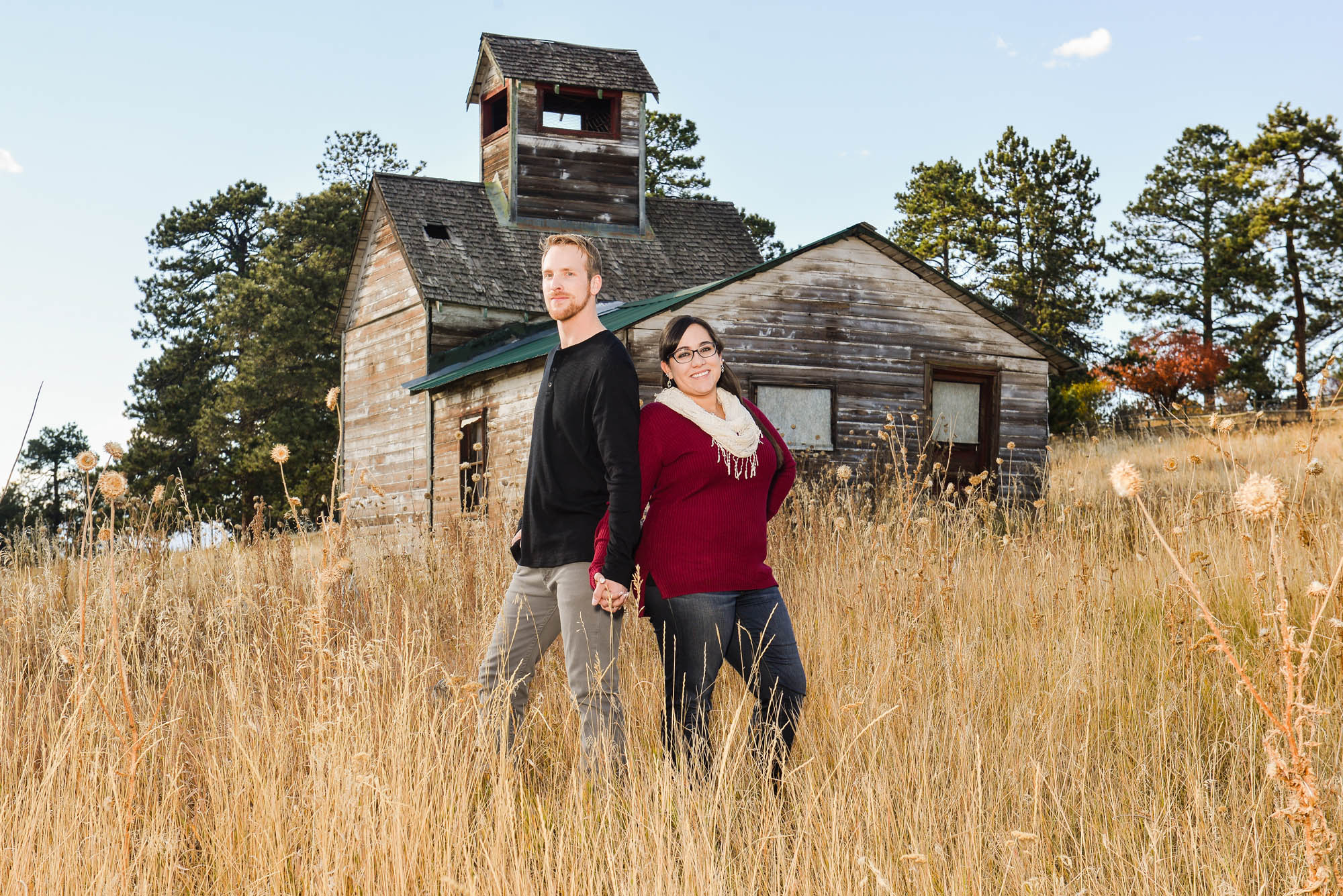 Kayla and Corey are engaged! It was so fun meeting these two for their engagement session last week. The fall colors made us change up locations last minute, but these two were more than happy to switch things up. We were lucky to have this hidden gem all to ourselves. We wandered through an aspen grove all the way to an old abandoned building. I am so excited for their wedding at Mile High Station next July. I just know they will be up for any crazy photo adventure ideas I throw their way! -Allie