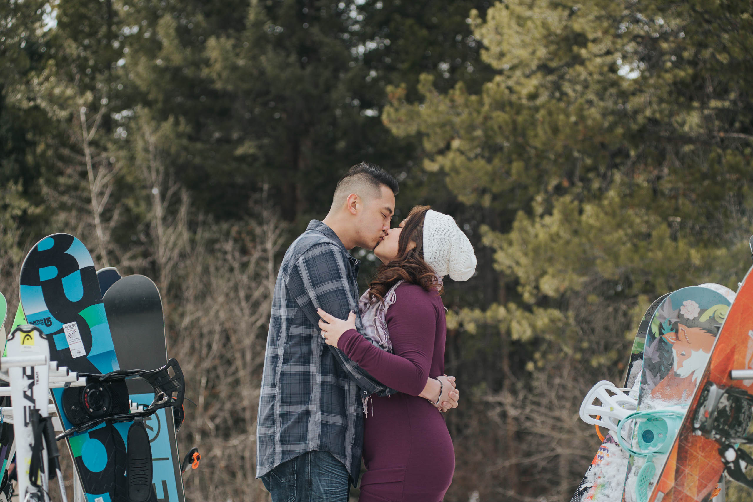 Kent and Amanda are getting married this May in Punta Cana! I cannot wait to photograph their wedding on the beach, but first we headed to the mountains for their engagement session. Team Klam met up with me at the base of Keystone last Friday – any engagement session I can have after a few runs at Keystone makes me super happy! We wandered around the village together, joking about how much warmer we will be on their wedding day as we tried to stay warm. Kent and Amanda were total champs, as they snuggled in close you could hardly tell it was winter – especially with such little snow! I am so excited to be a part of their wedding day this spring! -Allie