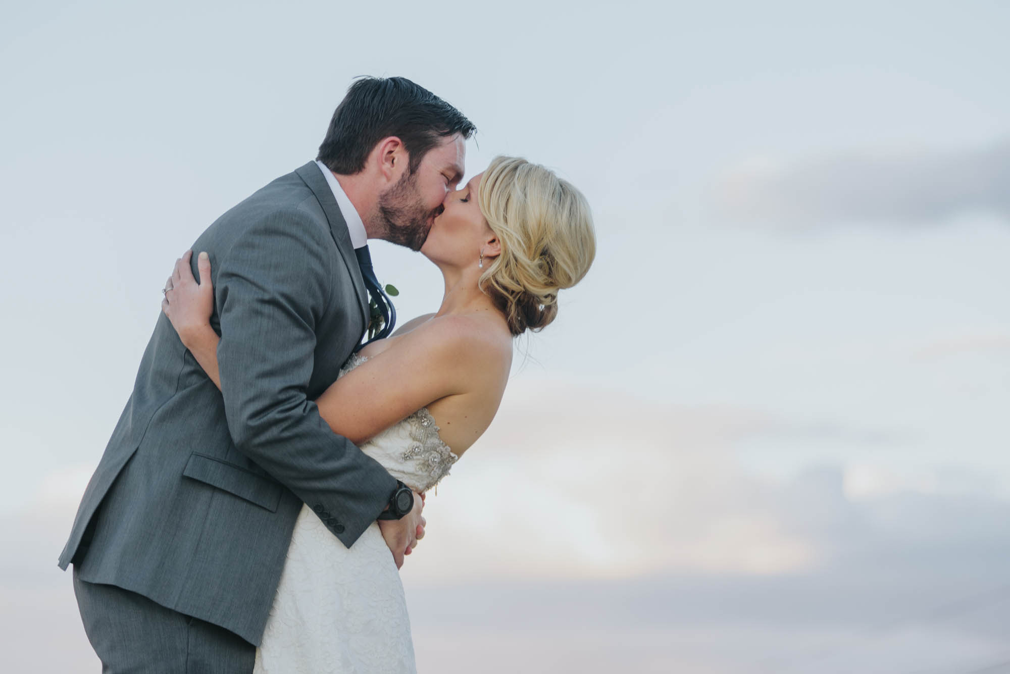 Their whole wedding party greeted them once they arrived, and we started taking photos right away! Rain clouds may have shown up on the radar, but they stayed away the entire afternoon! We had enough time with the soon to be Mr. and Mrs. to sneak away for more photos before their ceremony. During that time it was more clear than ever that these two were so meant to be! They were giddy with excitement. I hardly had to ask them to smile, or lean in for a kiss!