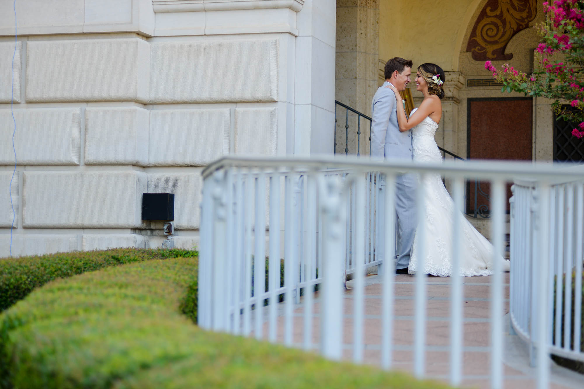 We started off at the Hilton with getting ready and as soon as she had put on her stunning dress and veil, which was a family heirloom, we headed out to take pictures. We explored the streets around the hotel and looked for shade every chance we got. Both for the better pictures and to avoid the Texas sun on an August day. After getting some great pictures of the girls and sending them off to the church, we focused on James and his groomsmen for a few shots.