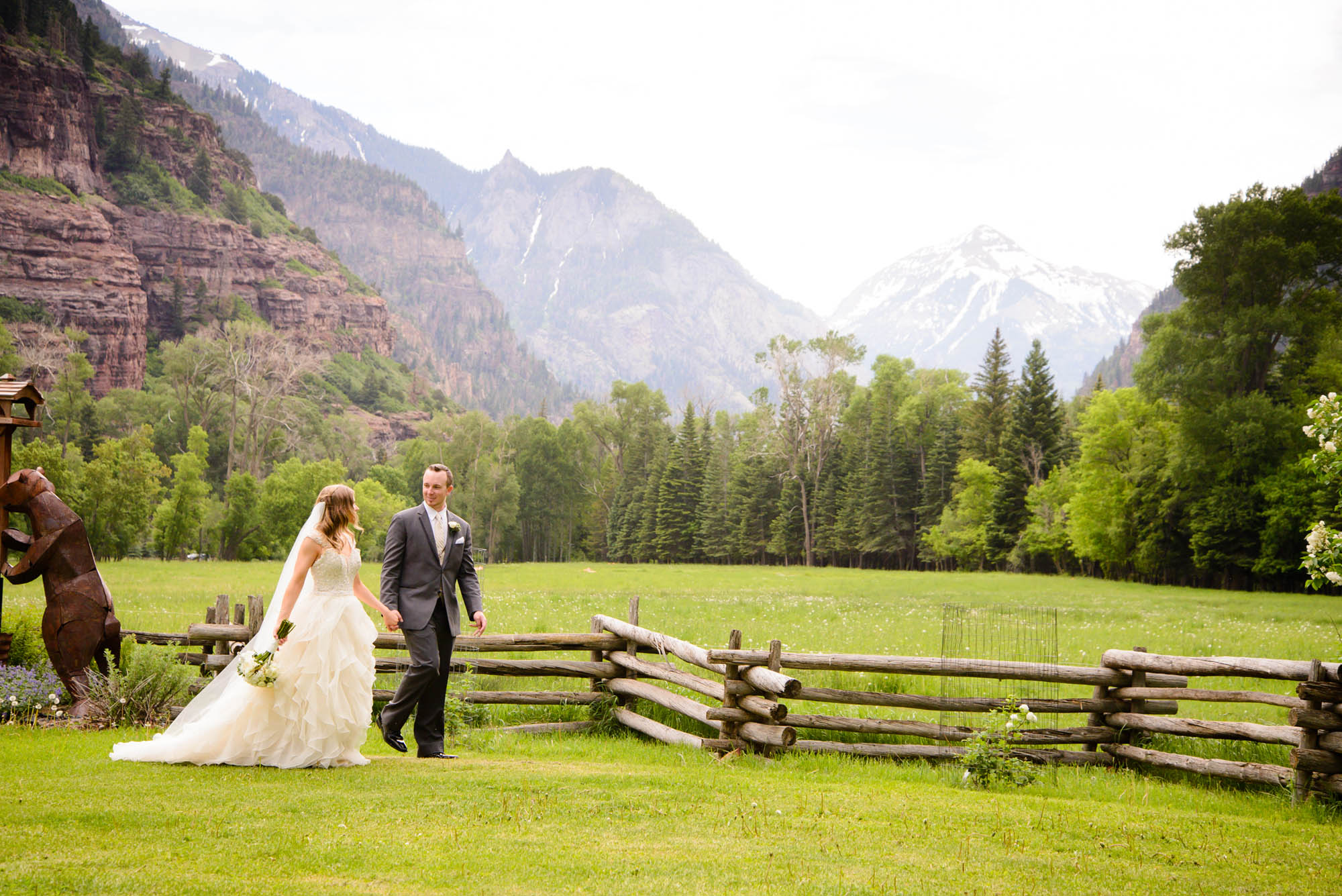 We then toured back to Ouray and hiked Cascade Falls. I was ticketed to see how gung ho Lindsey was in her flats and dress while hiking a pretty steep climb to the waterfall. These two live in Arizona now but definitely get a Colorado badge of toughness! We then headed down to their party at Fellin Park. They pitched a cute mini circus top tent for guests to celebrate at the feet of the grand surrounding mountains.
