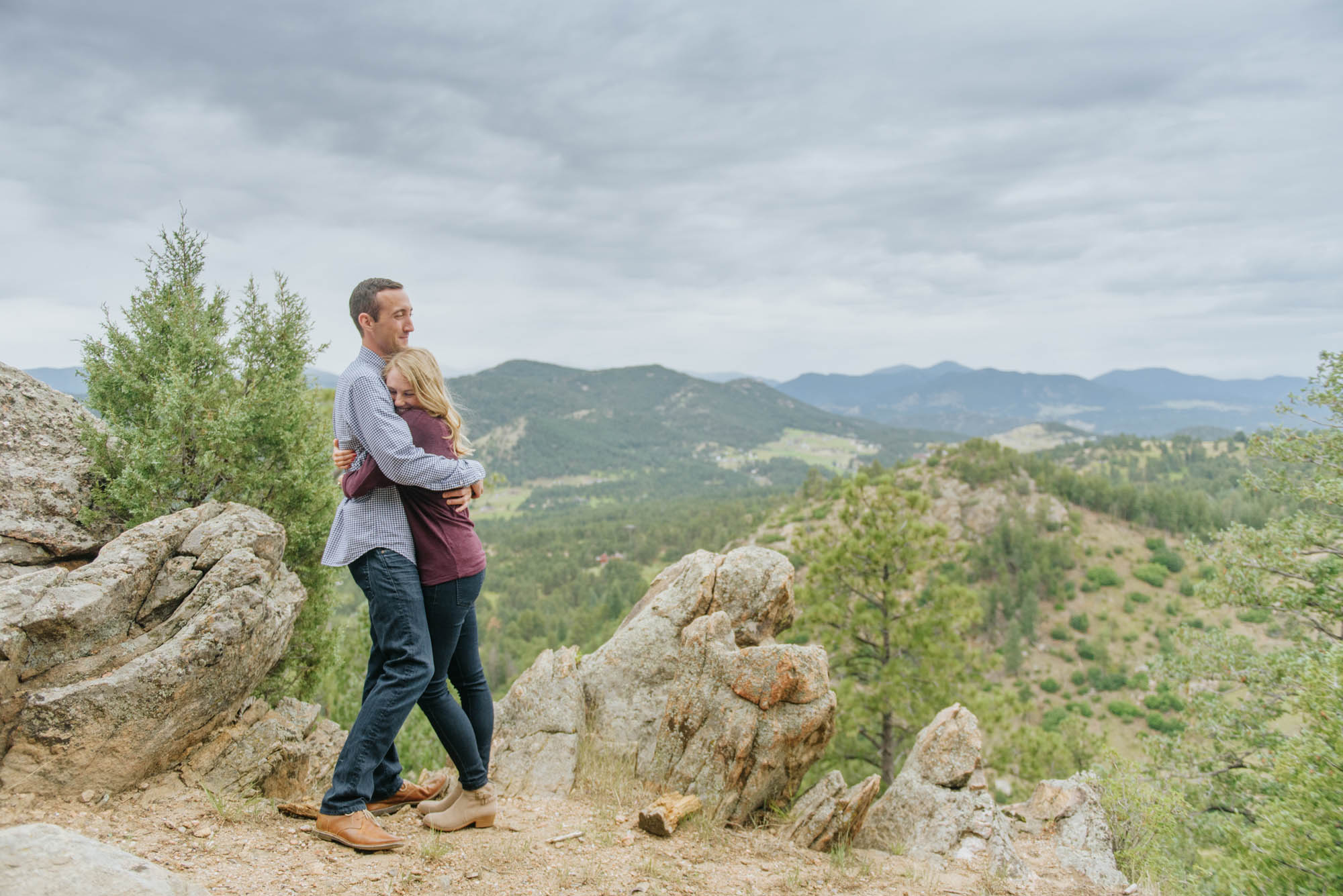 I was so excited when Mallory and JP suggested that we go to Mount Falcon for their engagement session. It was a special place to them. Amongst the rocks and evergreens and gorgeous mountain views, JP proposed to Mallory. It was fun to hear the story as we hiked to the spot where he popped the question. All the little things that go into a proposal make them one of my favorite moments. The excitement, the nervousness, the guessing, it is all so fun. You could see the joy in Mallory’s eyes as she told the story.