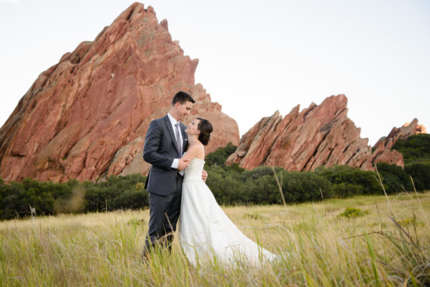 There is a reason why keep seeing us feature so many lovely weddings at Arrowhead Golf Club.  So many people just like Marcie and Michael seek out unique and beautiful and can’t help but fall in love with grand sandstone that cascade through Roxborough State Park.  Allie and I greeted them at a nearby hotel.  Michael had a funny start to the day when he realized that his dress shirt was left behind at their house.  After a few hilarious tries with trying on other shorter sleeved dress shirts, they realized that they needed one of their friends to save the day and rescue his lonely shirt back home.  People often say there is always one thing that comes up on a wedding day.  Well, this was the one thing that was a piece of cake!