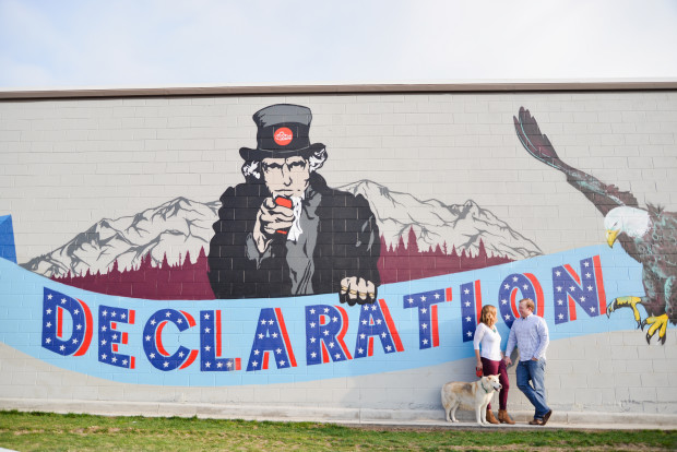 Beers, puppy dogs and evergreens. What does that make?? A perfect setting for a true Colorado couple’s engagement session! Meghan, Bryan and their dog, Henry, met me at Declaration Brewery for a few suds to start the session out. They played a round of corn hole and we caught up on how their summer was going.