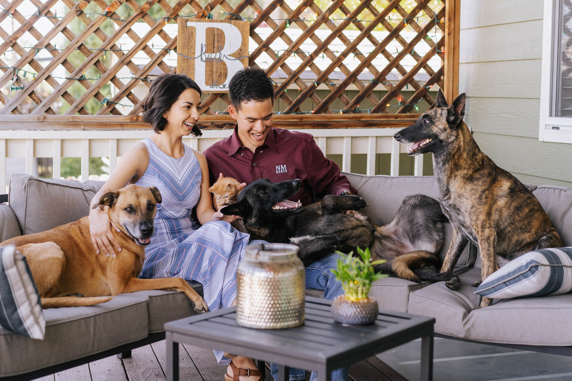 I love it when my couples choose to make their engagement session unique to them. Mercedes and Richard’s Castle Rock in-home session was so much fun! They started out with drinks in the kitchen while their dogs and kitten helped them out of curiosity. After getting the whole family together out on their patio, we headed to their neighborhood park to explore. I loved how playful and sweet these two are with each other. I know their wedding at Arrowhead is sure to be just as fun and beautiful. Let’s do this! –Ryan
