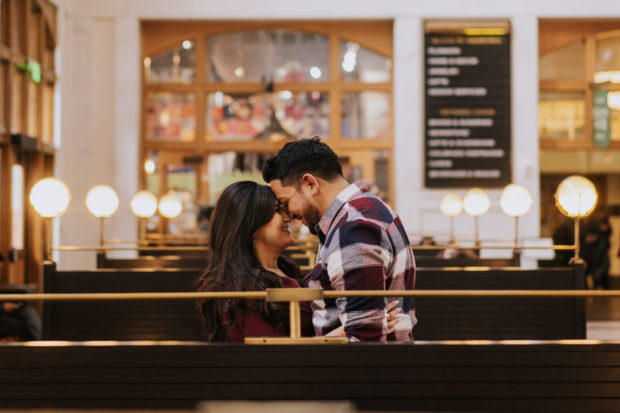 I’m excited to share my latest Winter engagement session with Natasha and Brandon who joined me at Union Station last week. Winter was in full effect at 37 degrees that day. Natasha and Brandon stayed warm as we traversed the city streets and cuddled on train station benches. Okay, maybe the old fashioned and glass of wine helped a bit too with keeping warm 😉 . I can’t wait to share more time with these two along with their friends and family next May at Wedgewood Brittany Hill –Ryan