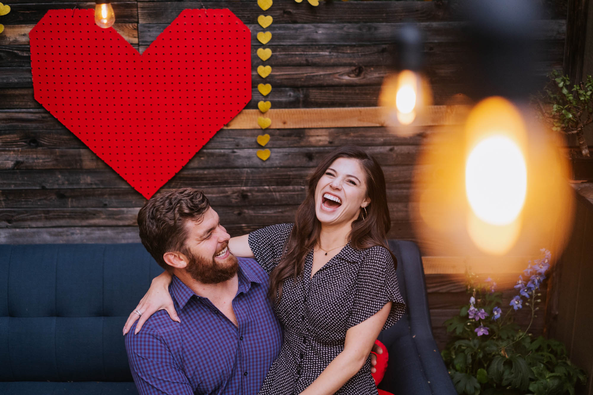 My favorite thing about engagement photos is that it shows off the couple just as they are, every day. A lot of times we go out and about in the world and do their favorite things. With Colorado being so beautiful it is often that I find myself with couples hiking and exploring the great outdoors. But who amongst us doesn’t have a happy place at home? There is nothing better than snuggling on the couch with your favorite person. If you are like Brett and Rebecca, you get your favorite person and your 5 favorite furry friends. I think a lot of people don’t do photos at their house because it seems uninteresting or they don’t know where. Rebecca and Brett don’t have this problem. When I got to their house I was so excited. Brett makes all sorts of cool art pieces for both indoors and out. Rebecca has incredible taste in unique pieces and together their home is a dream to shoot. I mean, I wouldn’t mind them come styling my house too. Then you add their chemistry and it is a killer deal. I even had someone tell me they look like movie stars. Which I agree with. It isn’t because they are beautiful. (Which they are). It is because together they are dynamic. They make each other laugh and the ease in which they interact is enchanting. Add the cool art to that and well, just see for yourself this super cool engagement.