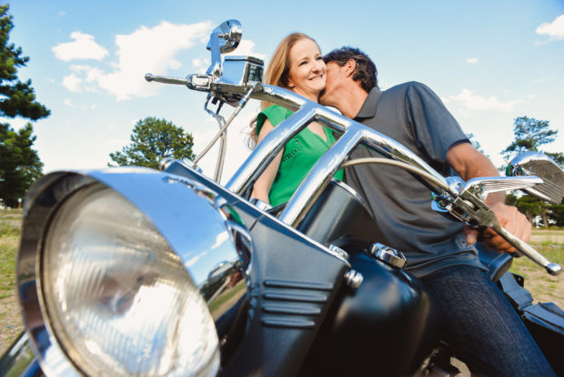 After taking the pups for a walk, Chris roared through the woods on his Harley. I realized that this was a first for me to work with a motorcycle! Having a motorcycle myself, I admired the bike’s matte paint job. Doesn’t Stacey’s ring look great on the fuel cap?!