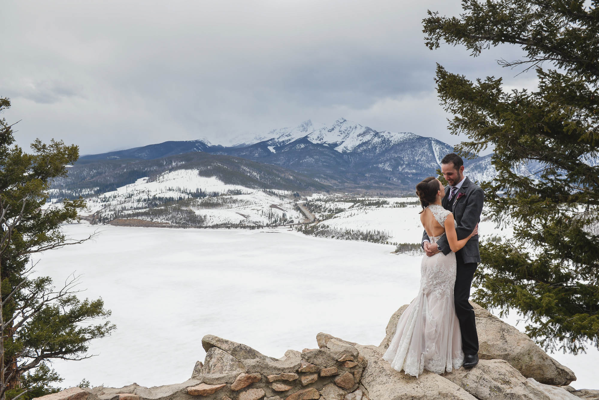 Oh YAY! I have been waiting for this wedding for SO long. Tiffany and Ryan have the best love story, and this wedding day was a long time coming. They have been together for over nine years, so it was obviously very special for friends and family to finally get to see them officially commit their lives to one another. Getting married in the mountains in March still means “winter wedding” in Colorado – and that is exactly what they were hoping for! We were lucky that the snow held out until after the ceremony so that all the hard work that went in to getting ready wasn’t compromised too early, but you should have seen the smiles on Tiffany and Ryan’s faces when we still got to go out for a few magical snowy pictures afterwards.