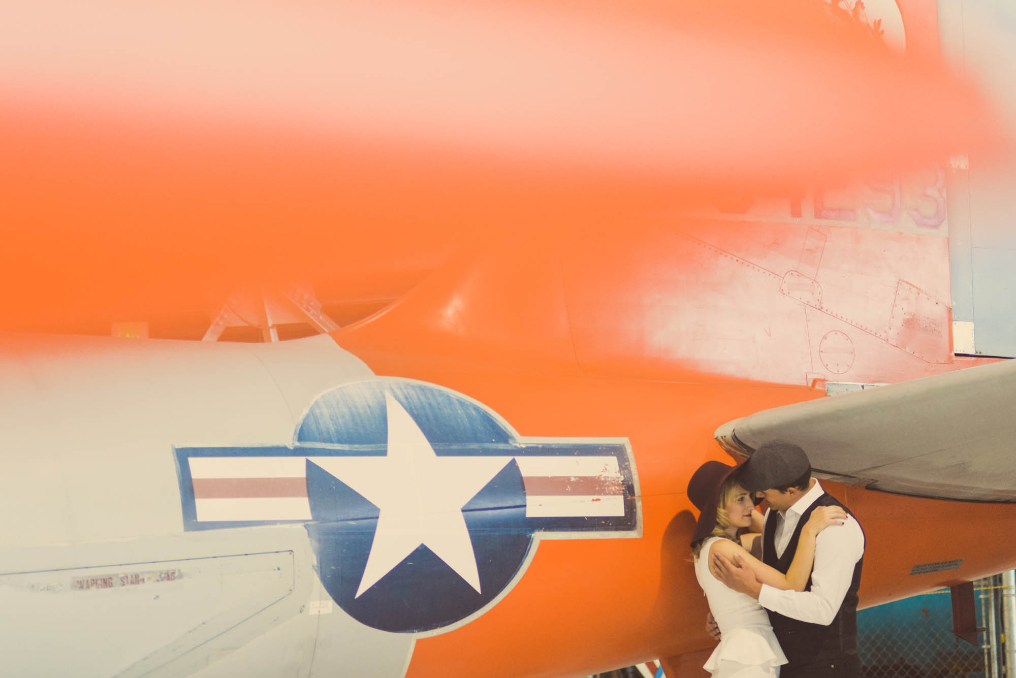 A word from the photographer: “Oh my GOSH, how cool are they?! These two have such natural chemistry and that combined with their impeccable style and ideas for the photos made this whole shoot pretty dang killer if you ask me. They pulled off the romantic old-hollywood look so well! Wings Over the Rockies Air & Space Museum was the perfect location for their travel theme. I can’t wait for their June wedding at Arrowhead Golf Club next year!”